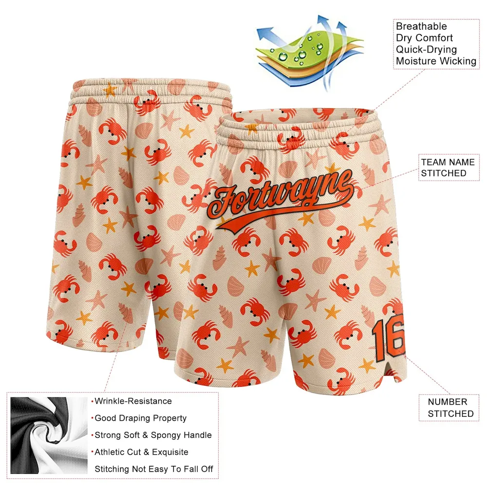 £24.99Custom Cream Orange-Black 3D Pattern Crabs Shells And Starfishs Authentic Basketball Shorts