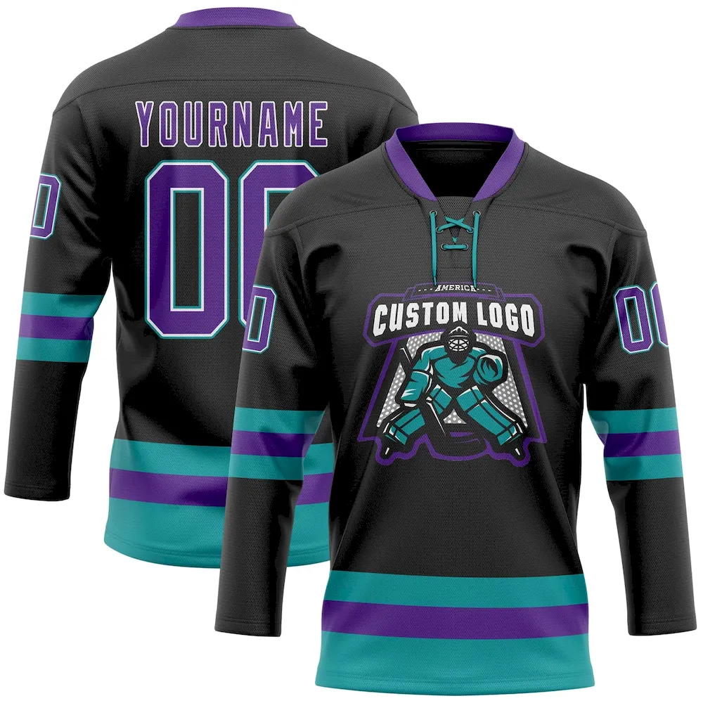 £27.99Custom Black Purple-Teal Hockey Lace Neck Jersey