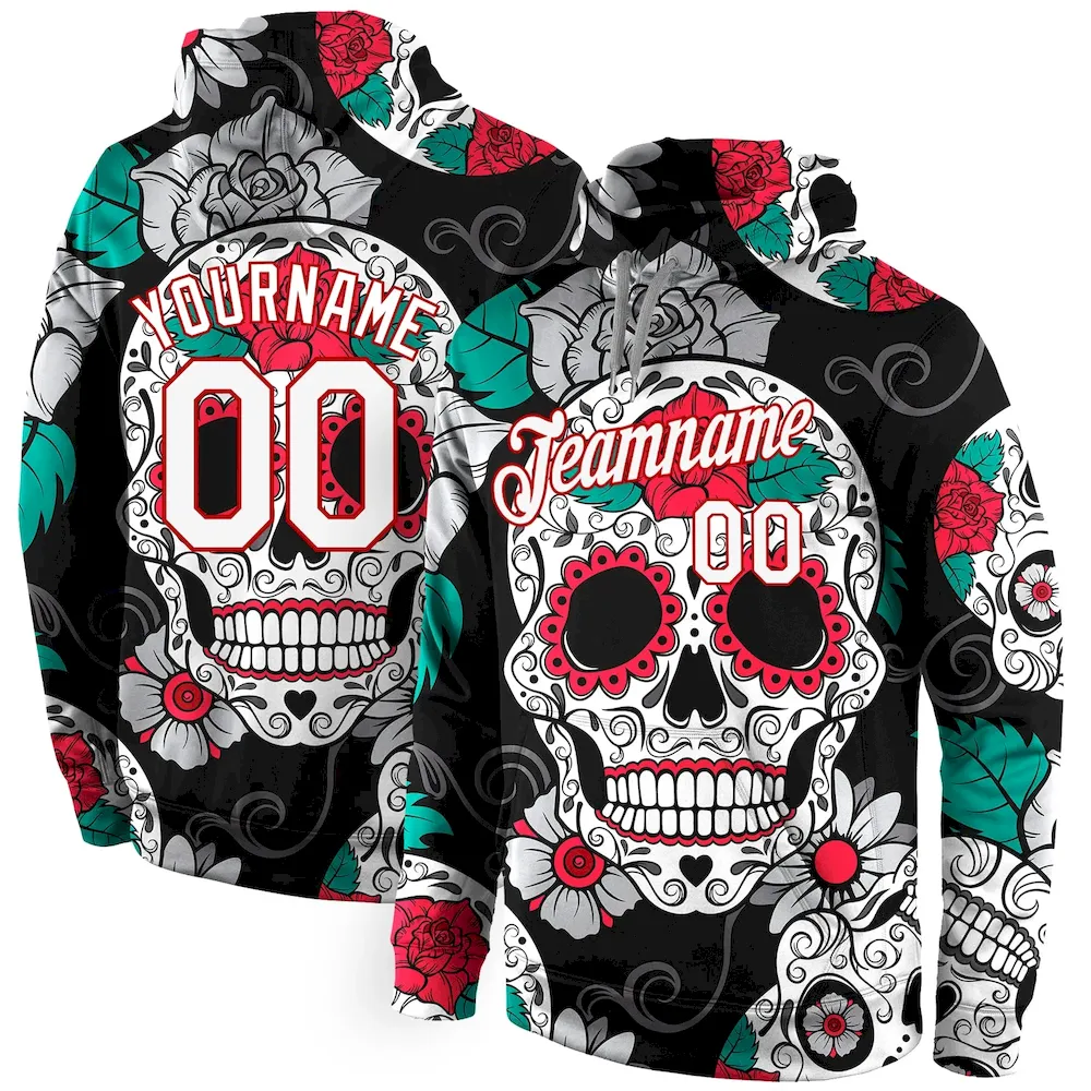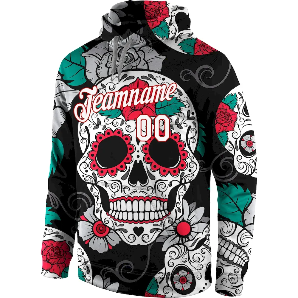 Custom Stitched Black White-Red 3D Skull Fashion Sports Pullover Sweatshirt Hoodie