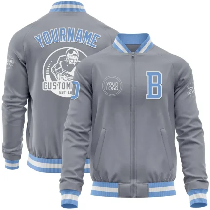 Custom Kelly Green White-Light Blue Bomber Full-Snap Varsity Letterman Jacket