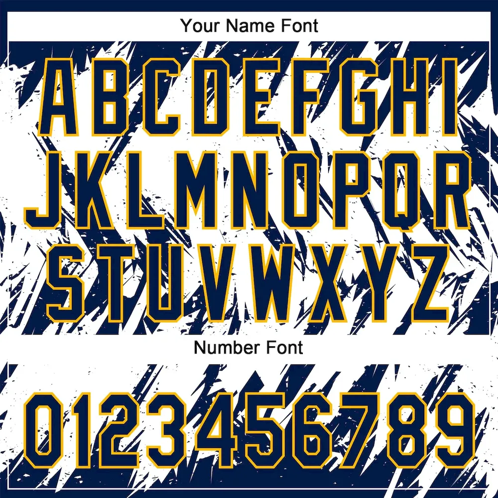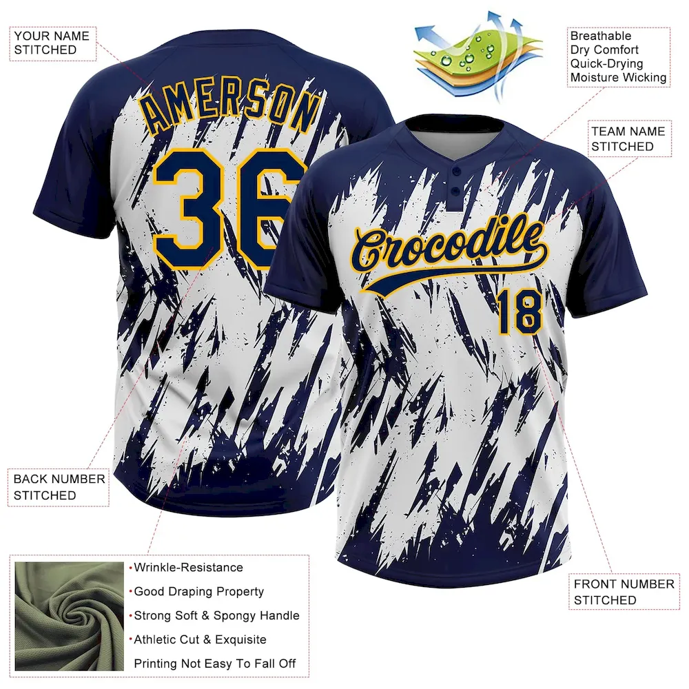 Custom Navy Gold-White 3D Pattern Abstract Sharp Shape Two-Button Unisex Softball Jersey