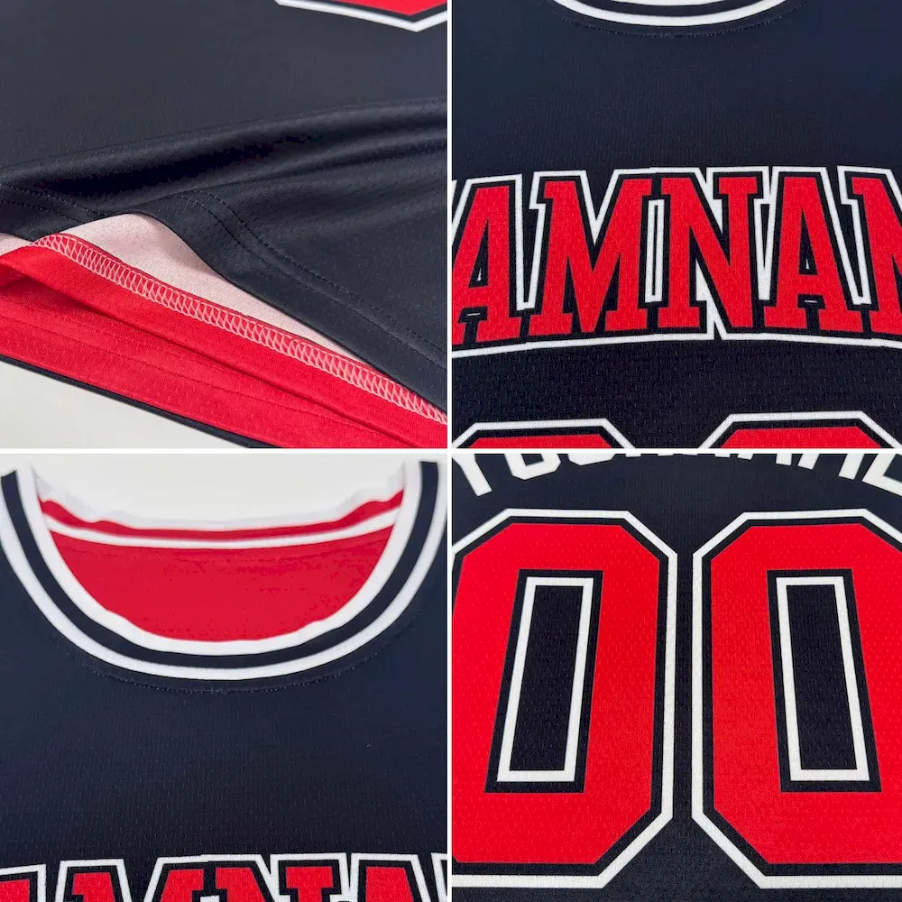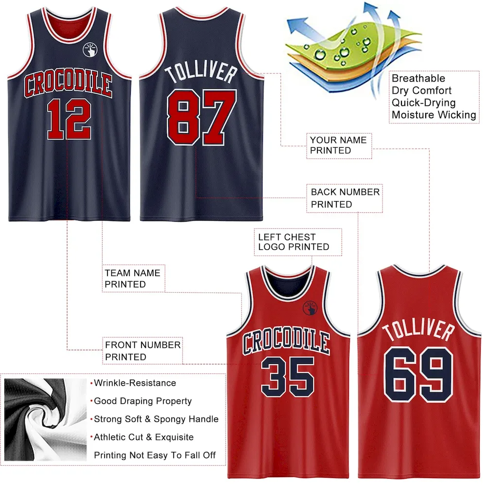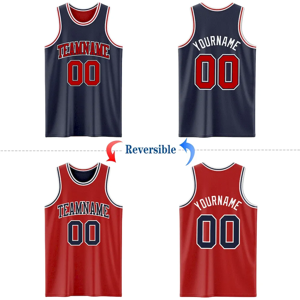 Custom Navy Red-White Reversible Double Side Basketball Jersey