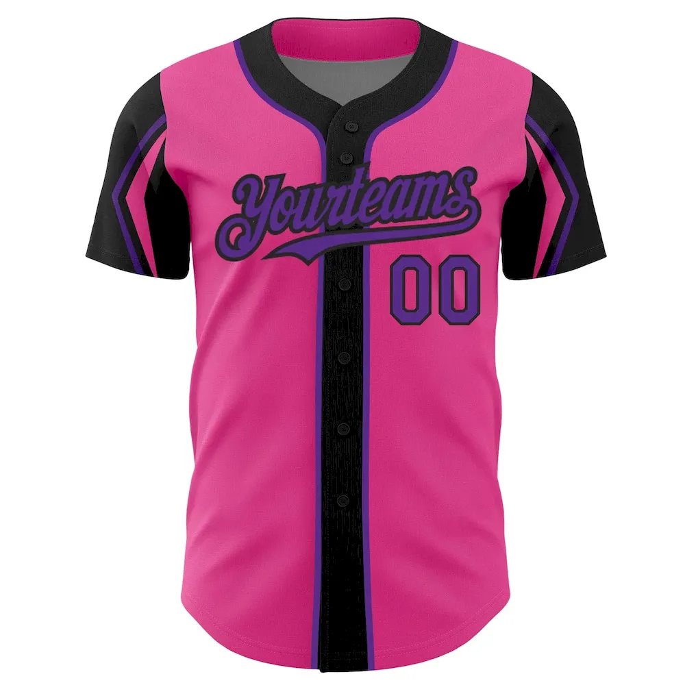 Custom Pink Purple-Black 3 Colors Arm Shapes Authentic Baseball Jersey