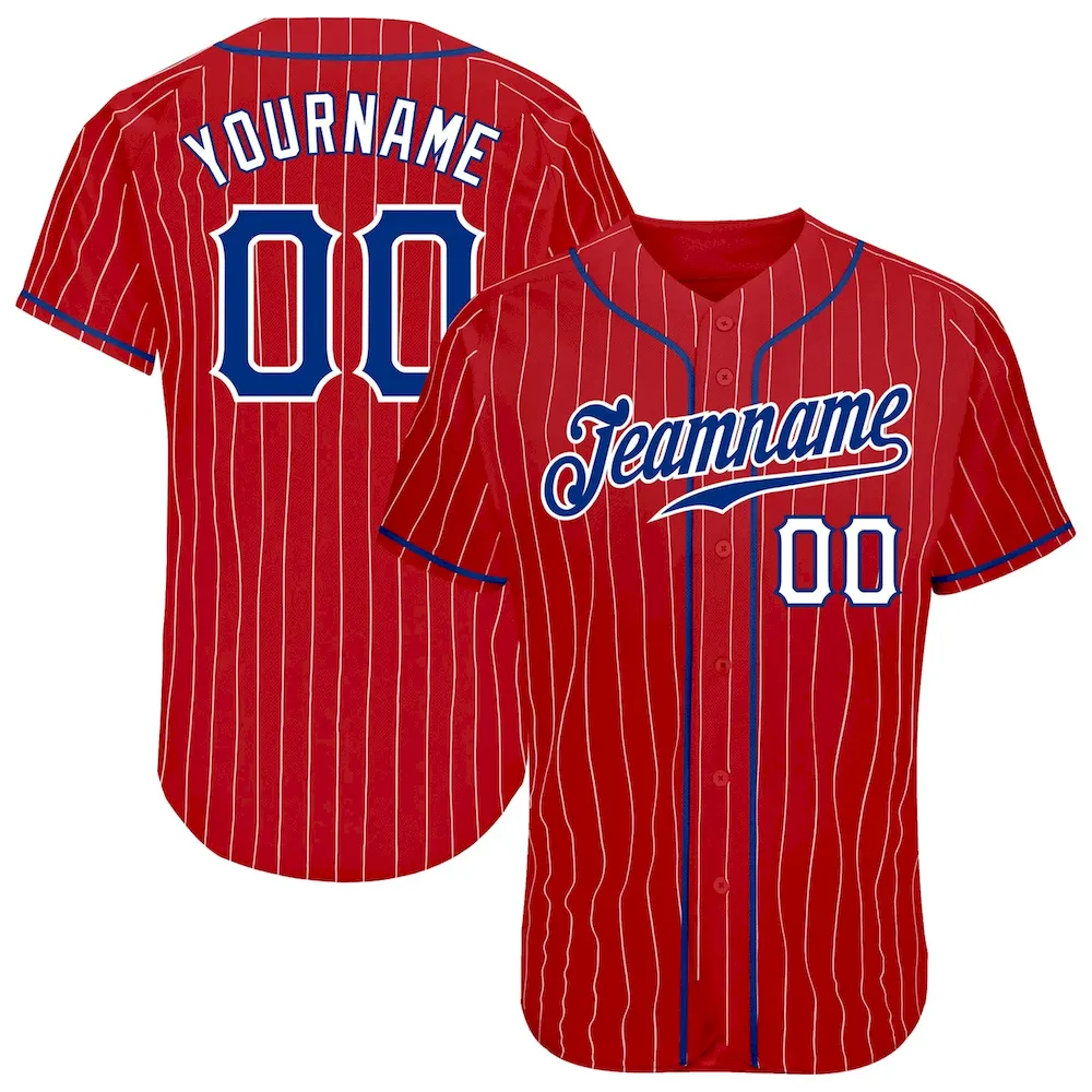 Custom Red White Pinstripe Royal-White Authentic Baseball Jersey