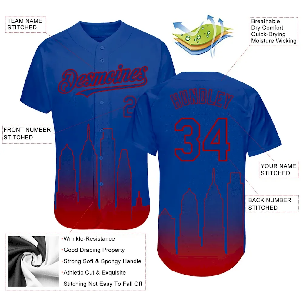 Custom Royal Red 3D Philadelphia City Edition Fade Fashion Authentic Baseball Jersey