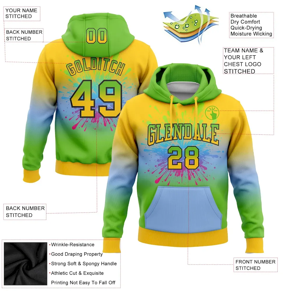 Custom Stitched Yellow Aurora Green Light Blue-Black Fade Fashion Splash Sports Pullover Sweatshirt Hoodie